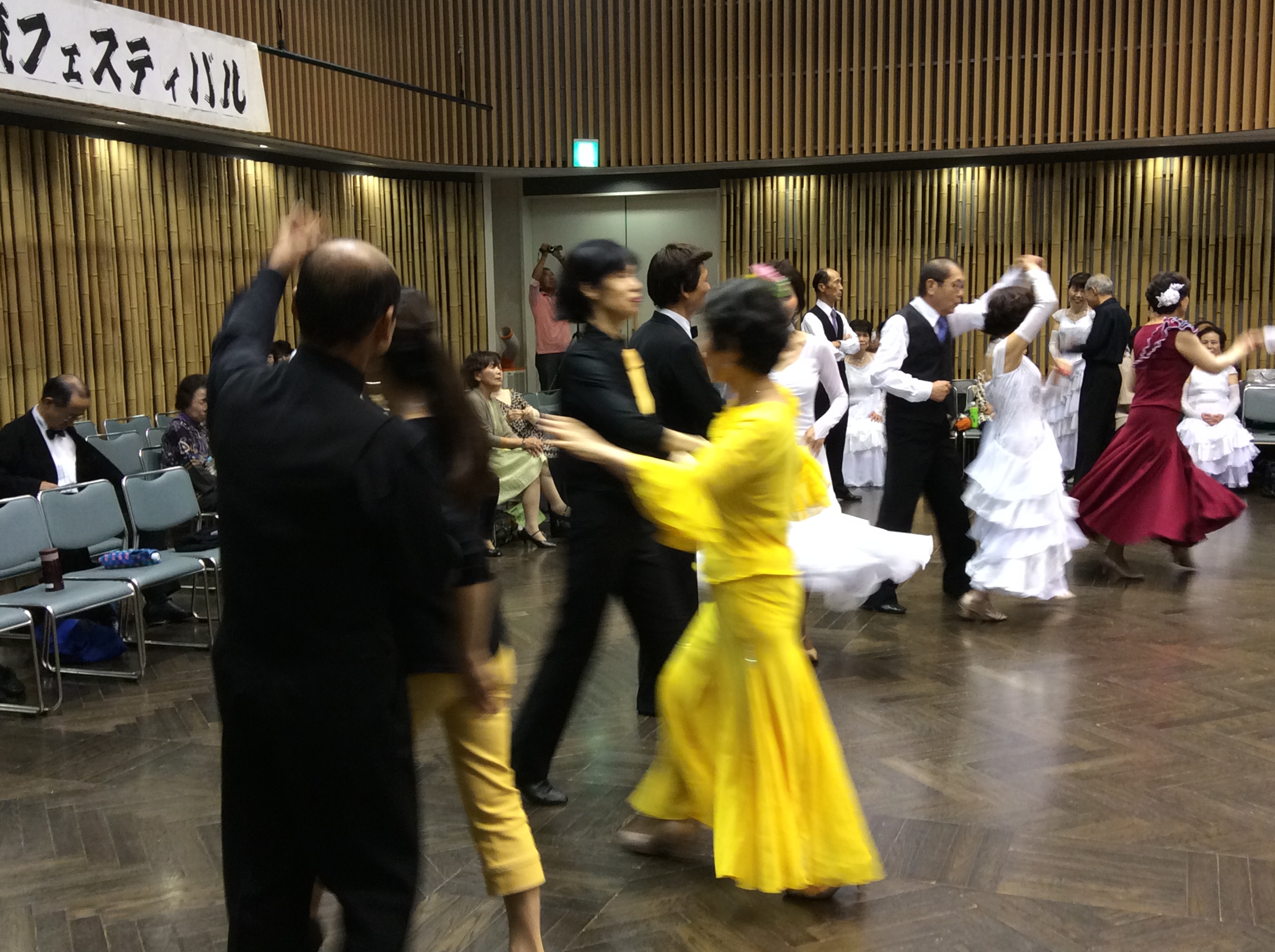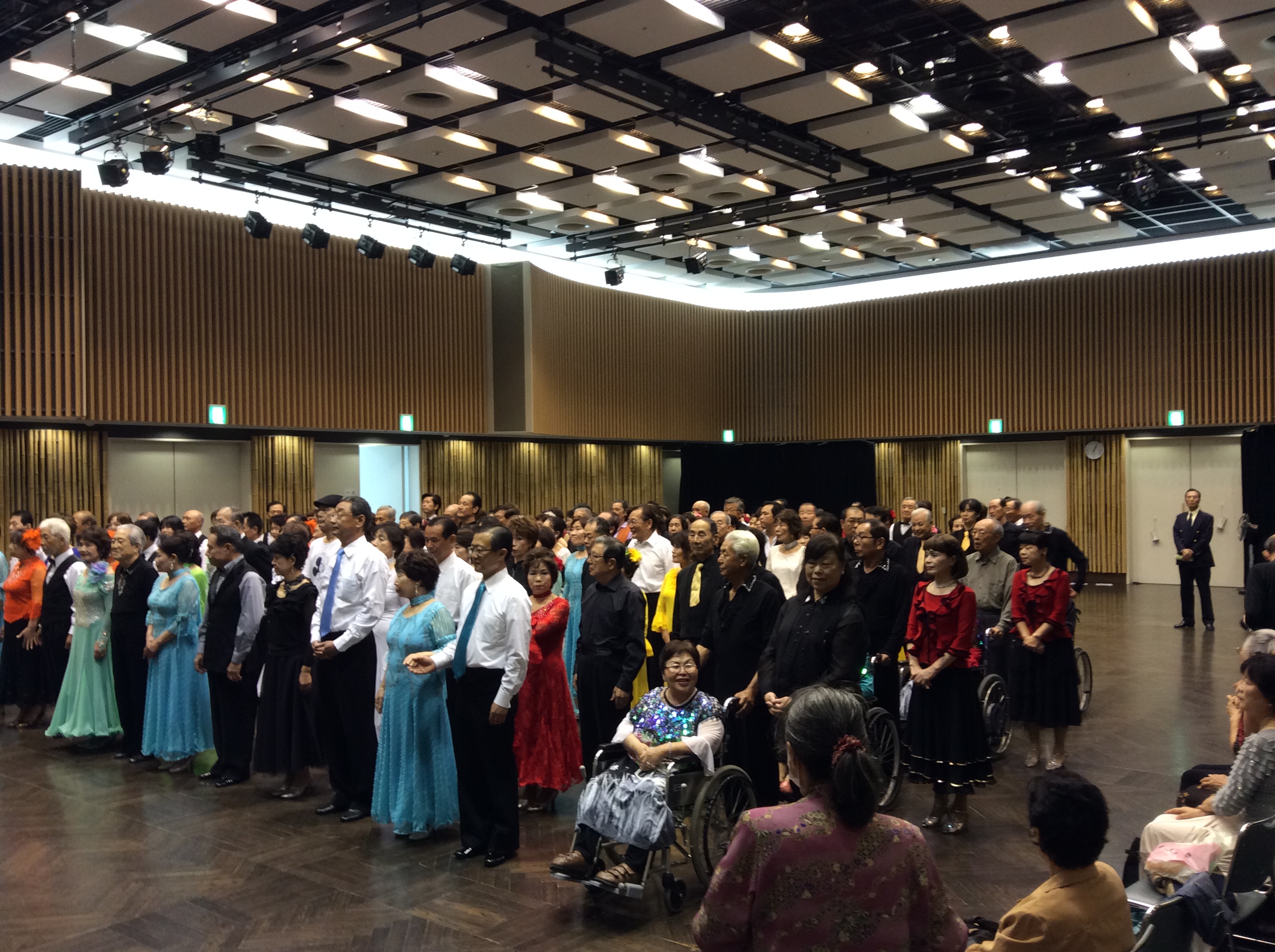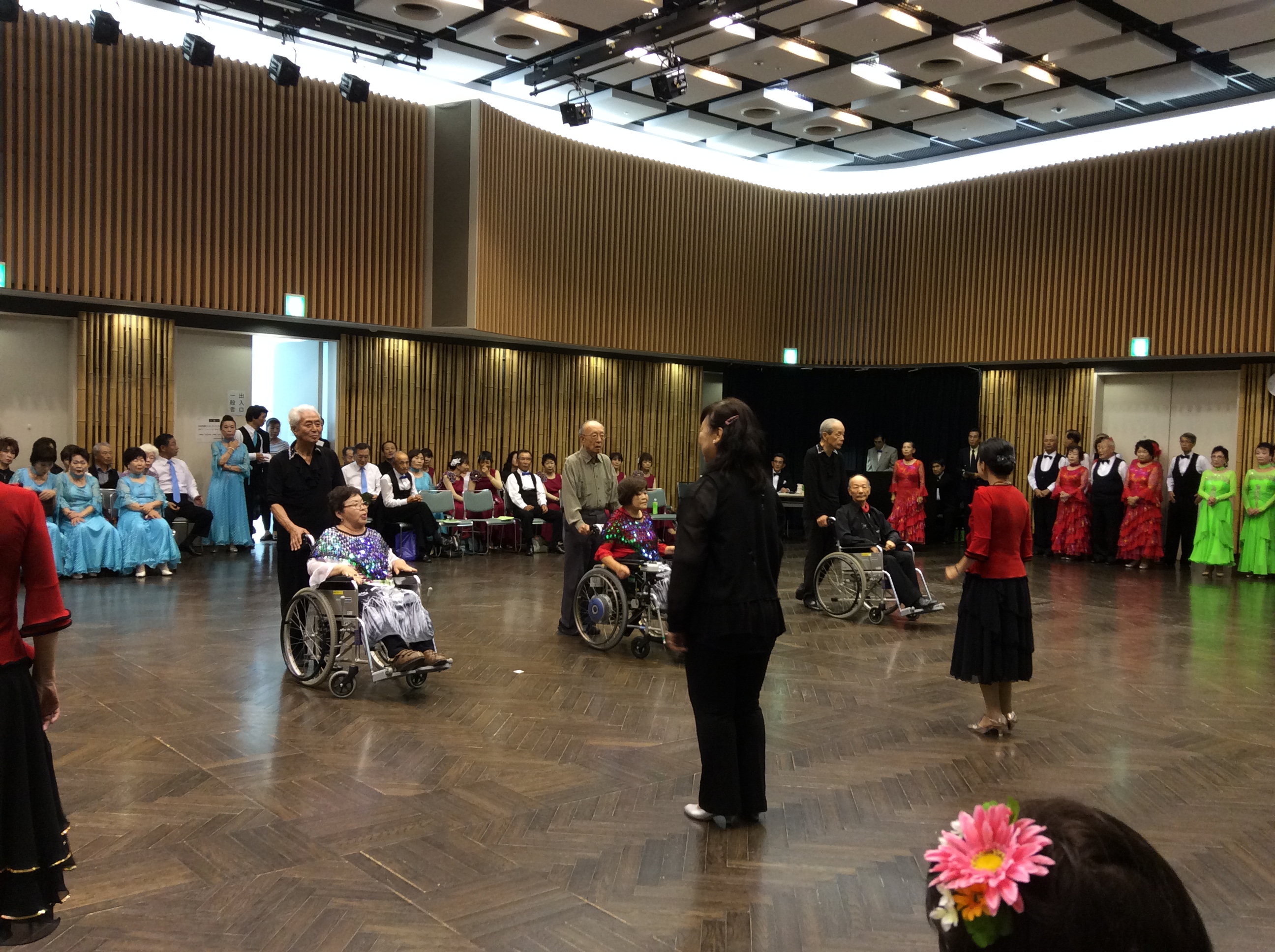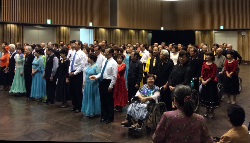 今年の「身障者と健常者のジョイントパーティ」は7月27日、岡﨑みやこメッセで開催されました。今年は社交ダンスだけではなく、フラメンコダンスやフォークダンスなどいろいろなジャンルのダンスが披露されました。車椅子ダンスは「子亀の会」が披露し大喝采を受けました。