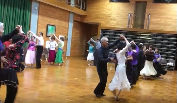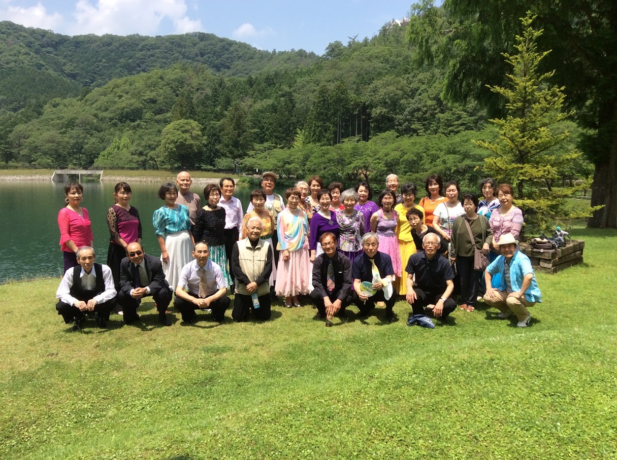 大原野中学校コミュニティホールで定例のダンスパーティを開催しました。伊丹から田中ひとみ先生をお迎えして、ワンポイントアドバイスをいただきました。