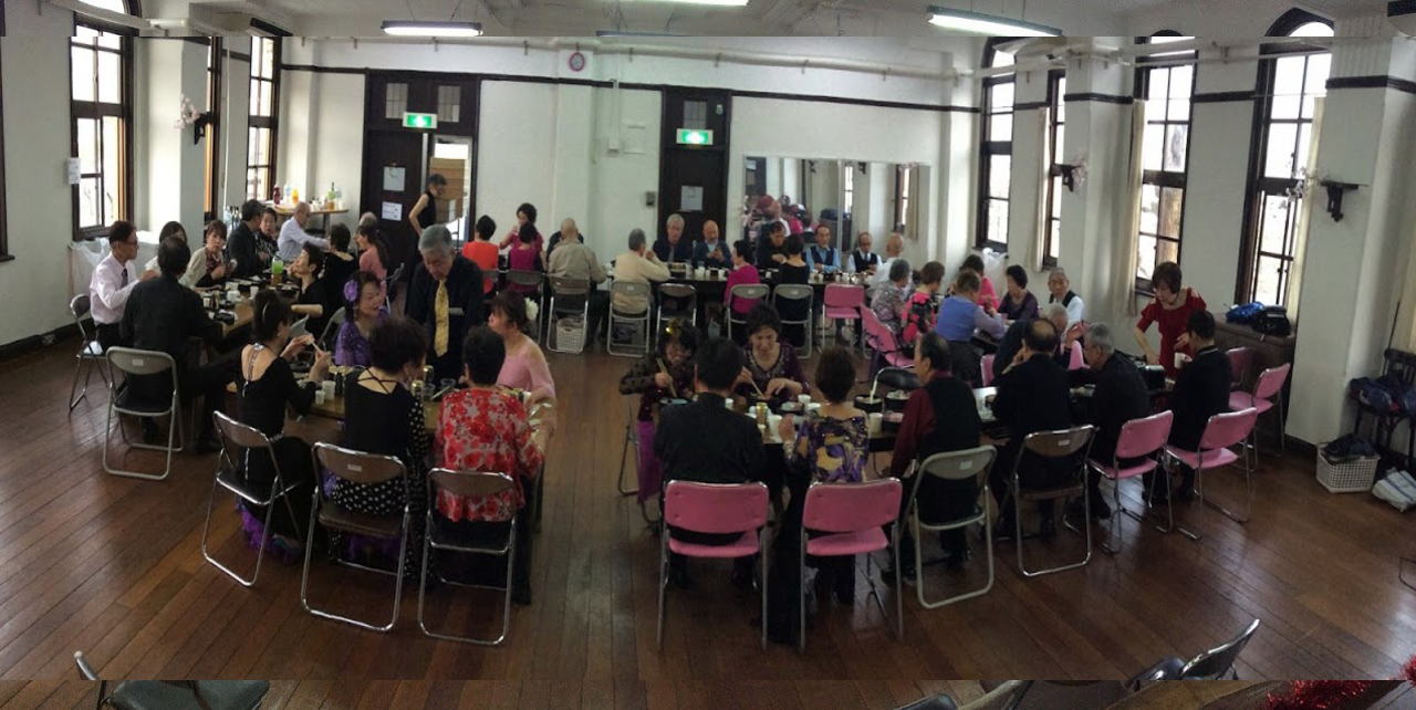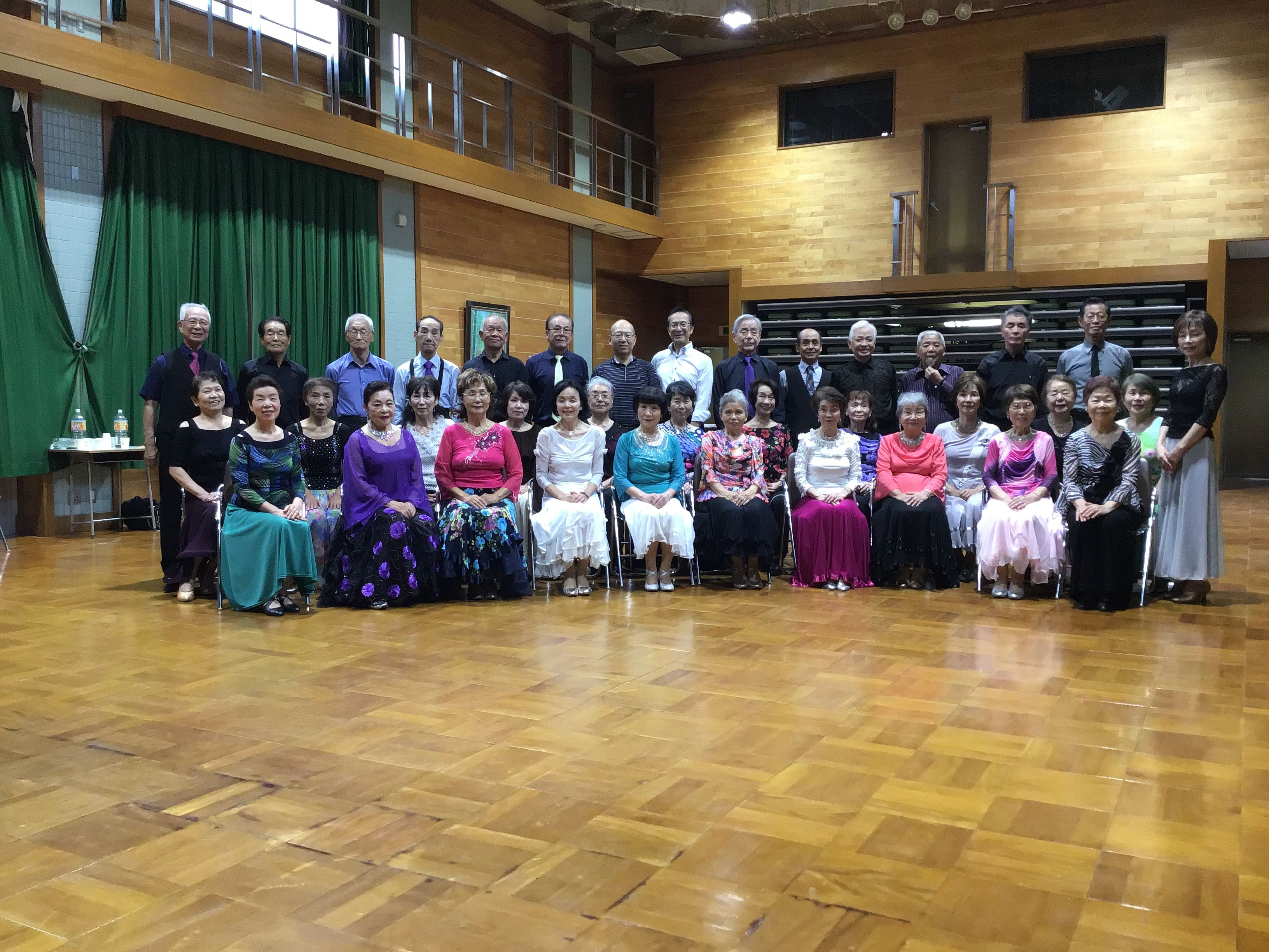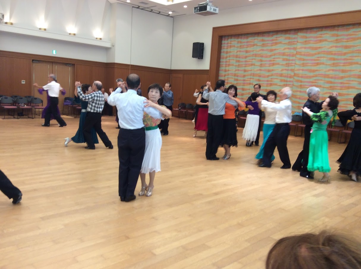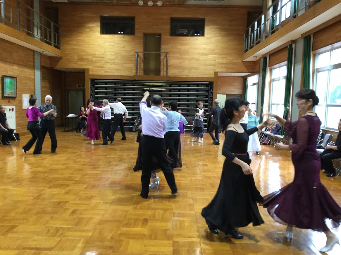 毎月定例で開催している、大原野中学校コミュニティホールで開始しているダンスパーティは、8月は空調機故障のため中止しました。9月は定例の第3日曜日に開催し40名のダンス愛好家が集いました。