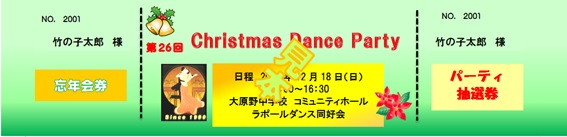 第27回クリスマスダンスパーティへの申し込みの方へ、チケットを配送しました。