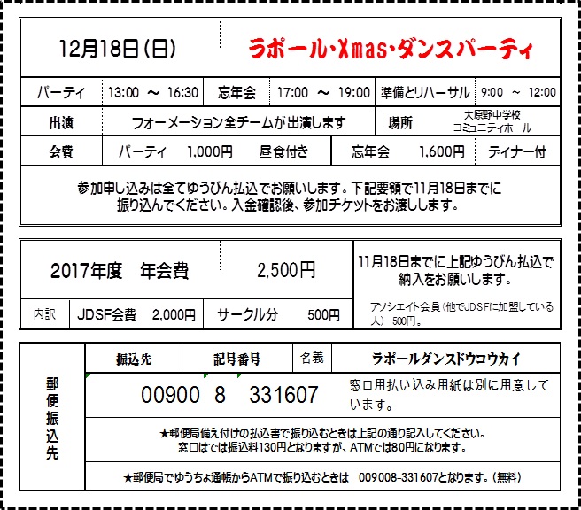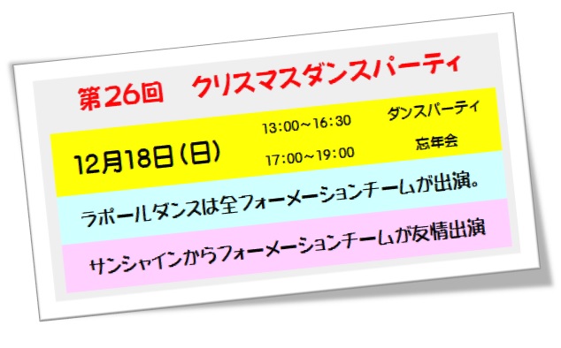 12月17日に行われるクリスマスダンスパーティの案内を通知しました。