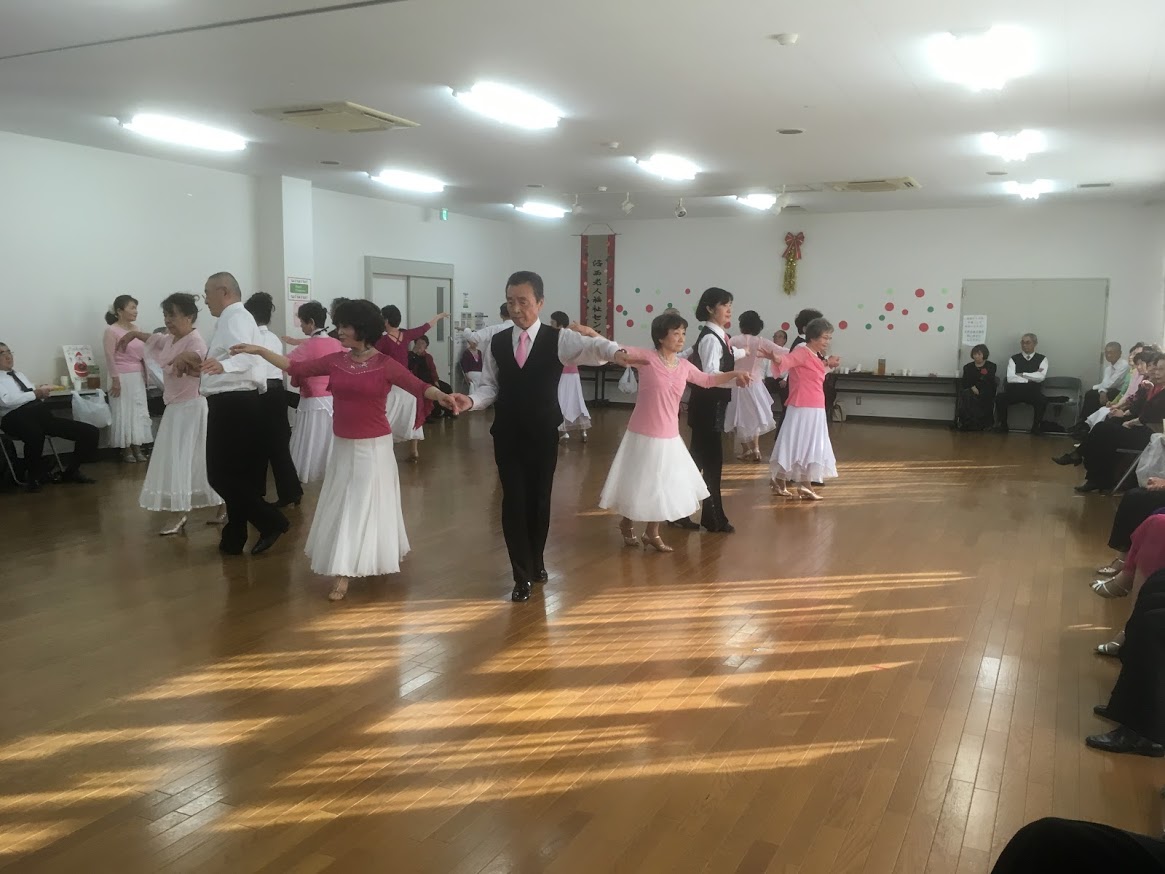 らくろうダンスサークルのクリスマスダンスパーティが開催され、ラポールダンス同好会から、初級ワルツ・中級ルンバ・女子ノイジーチームが賛助出演しました。