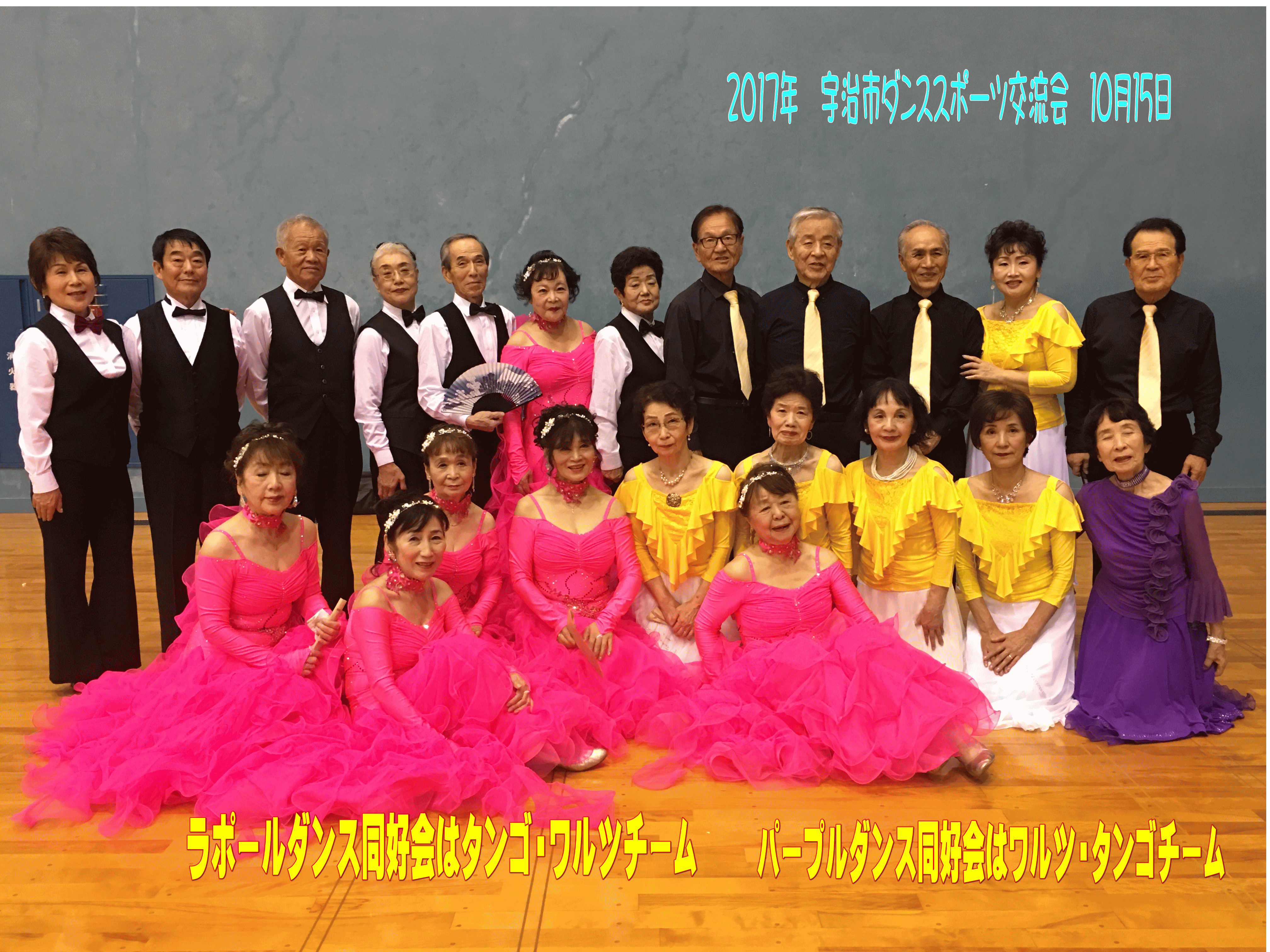 ◆2017年10月15日 宇治市ダンススポーツ交流会がおこなわれ、ラポールダンス同好会とパープルダンス同好会からフォーメーション出演しました。