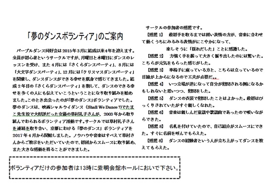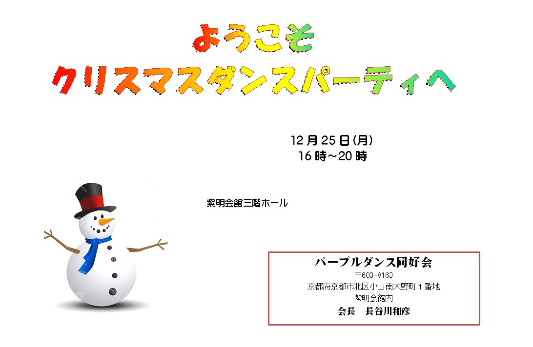 パープルダンス同好会から、「大文字ダンスパーティ」の案内が届きました。
