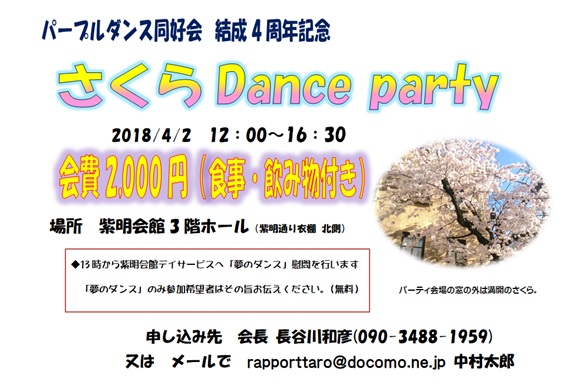◆パープルダンス同好会のさくらダンスパーティの案内です。