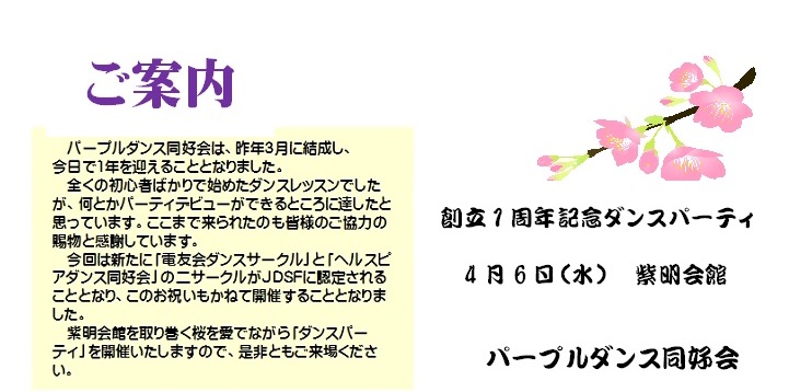 ◆パープルダンス同好会からパーティの案内が届きました。