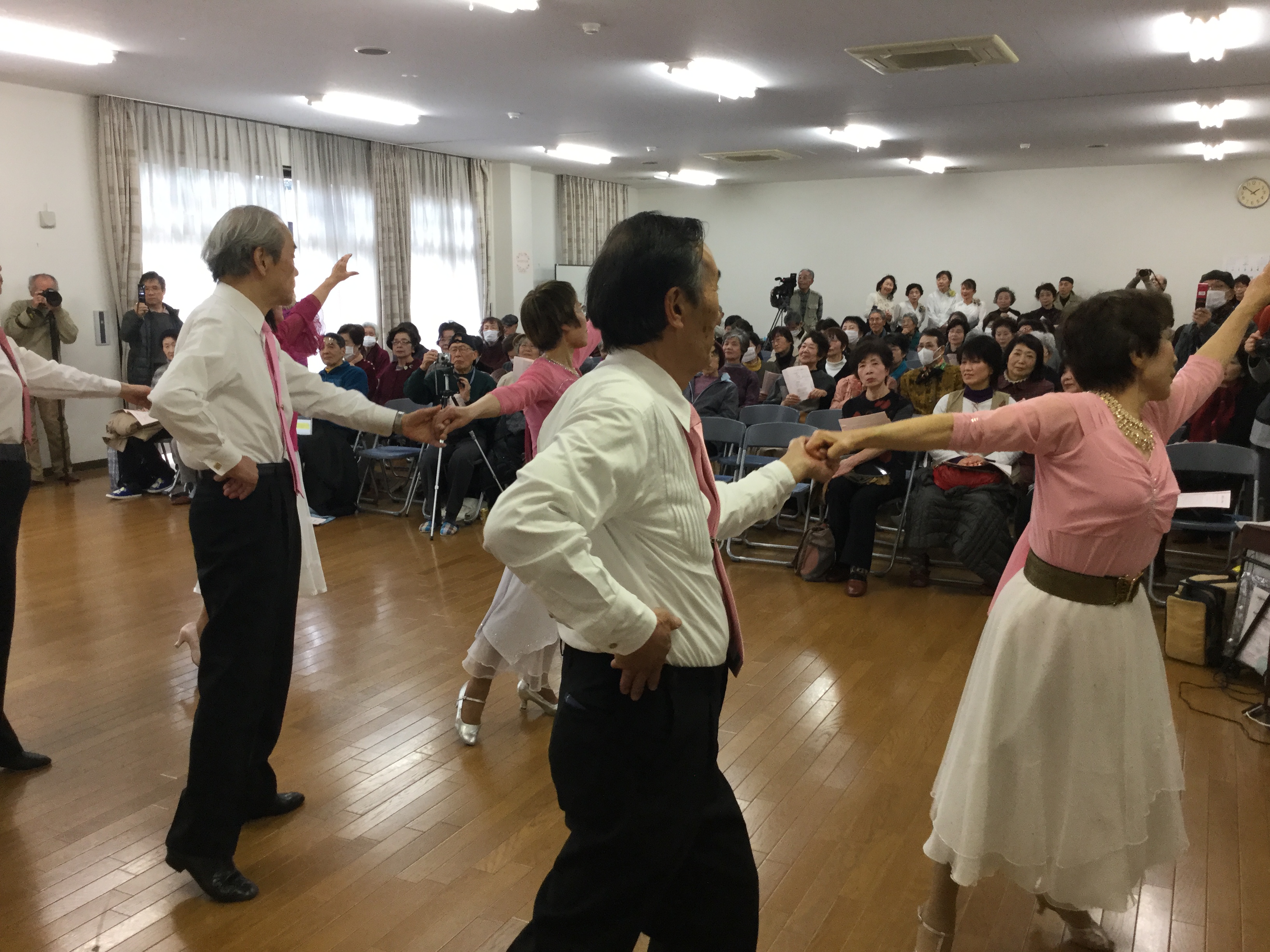 らくろうダンスサークルがサークル成果発表会で、地域住 民にワルツとタンゴを披露しました。